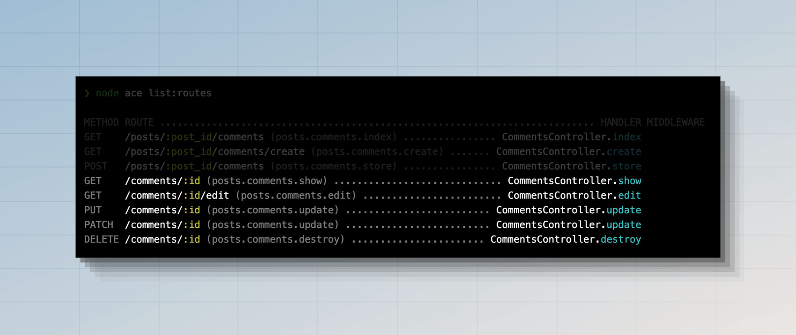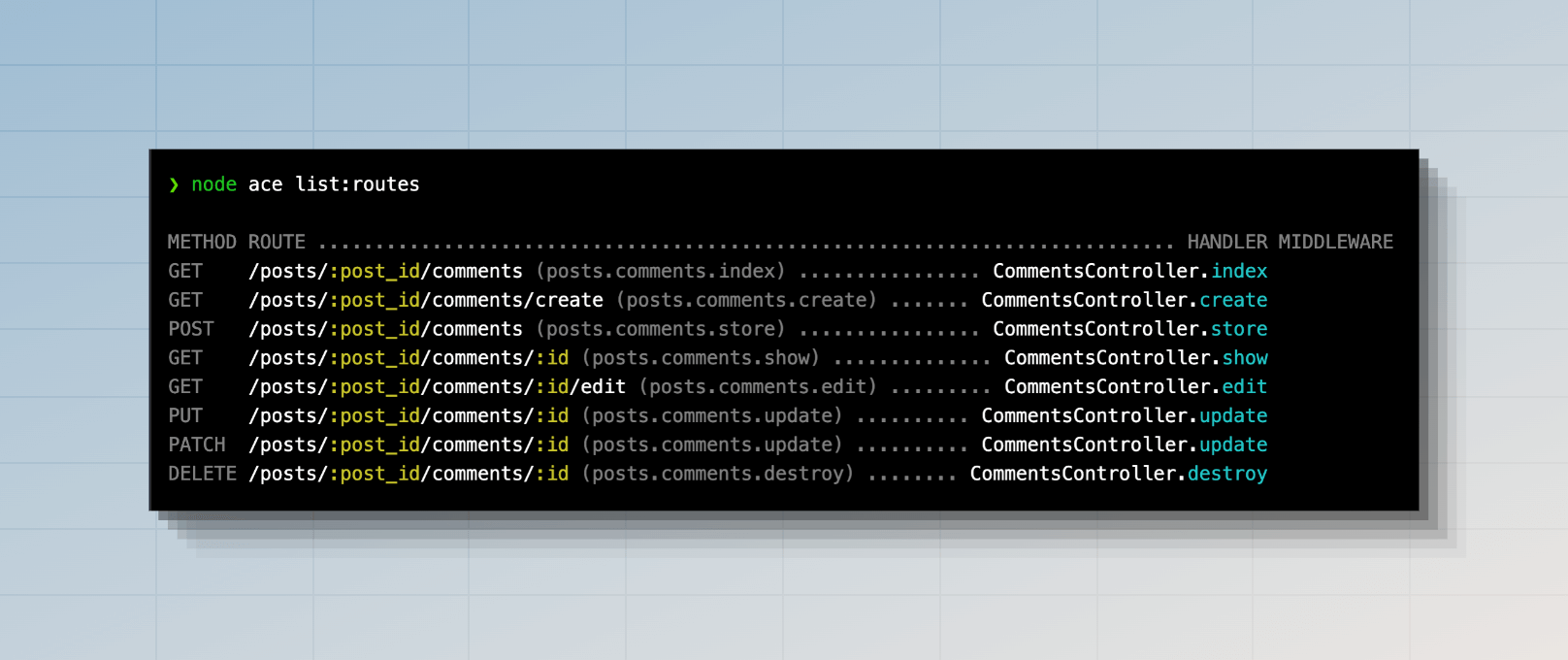 以下是 resource 方法注册的路由列表。你可以通过运行 node ace list:routes 命令查看此列表。