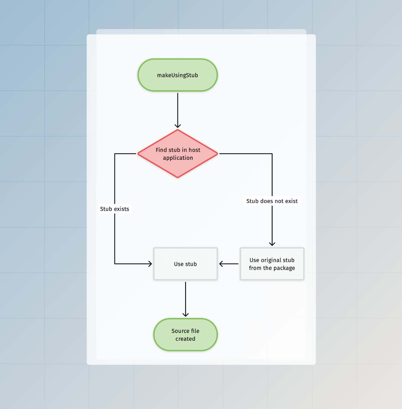 最后,我们必须指定使用 stub 创建的文件的目标路径。我们再次在 stub 文件中指定目标路径,因为它允许宿主应用程序弹出 stub 并自定义其输出目标。